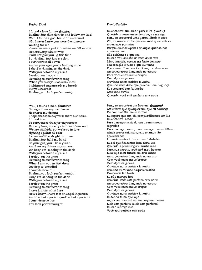 Veja o vídeo de perfect em português clicando aqui. Tem muitas outras músicas internacionais com versão em português, basta lembrando que versão é diferente de tradução. Ed sheeran perfect tradução em portugues baiaxar musica : Blog da música 1 year ago. Tanner patrick — perfect (ed sheeran cover) 04:25.